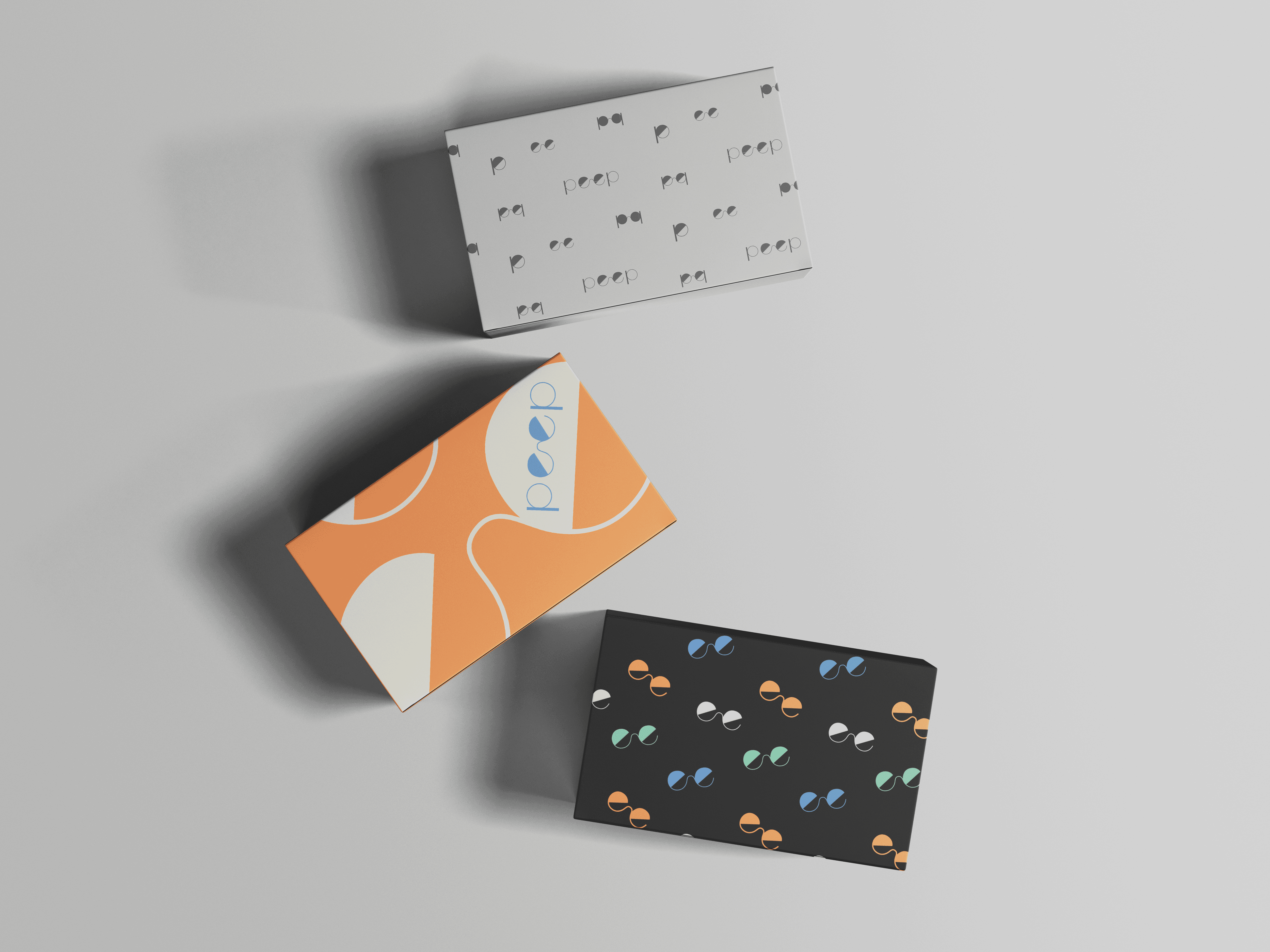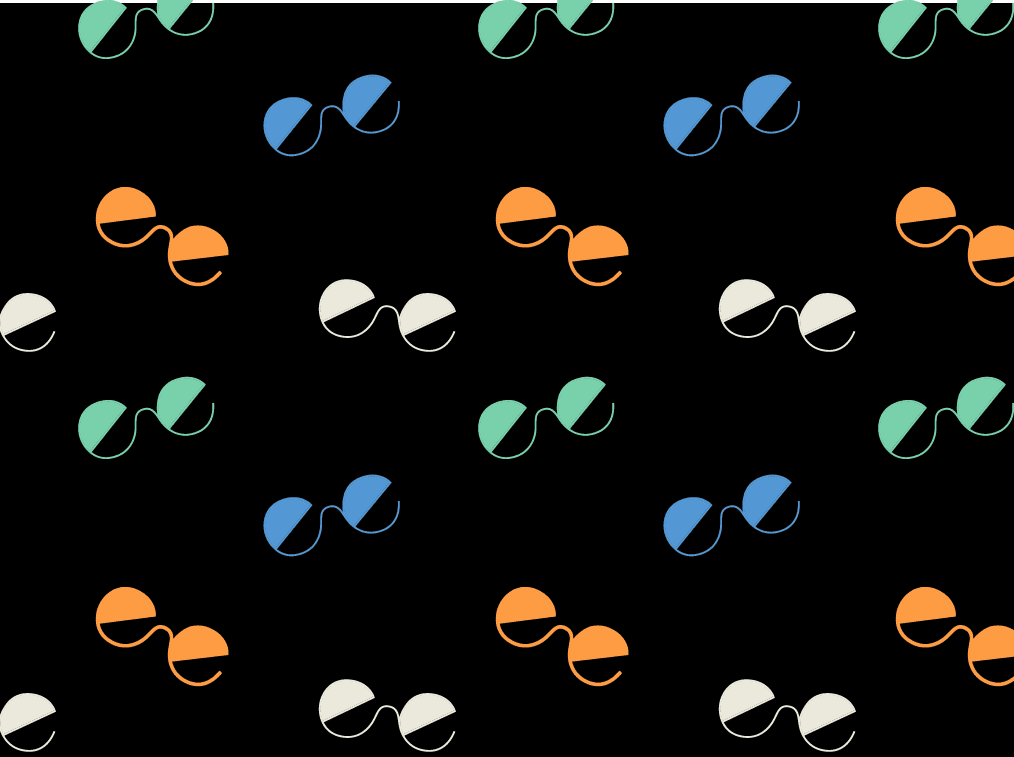 I designed unique brand patterns to be used across packaging, and other brand materials. The first being the most subtle. A zoomed in version of the original glasses design, that incorporates the primary logo. The second pattern uses the same glasses icon in a more dense arrangement. The third patter combines all of the brand logos and marks.