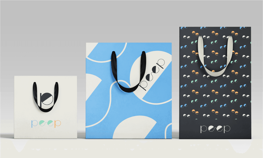 Below is a demonstration of the brand patterns in action on physical packaging including, shopping bags, boxes, and cases.