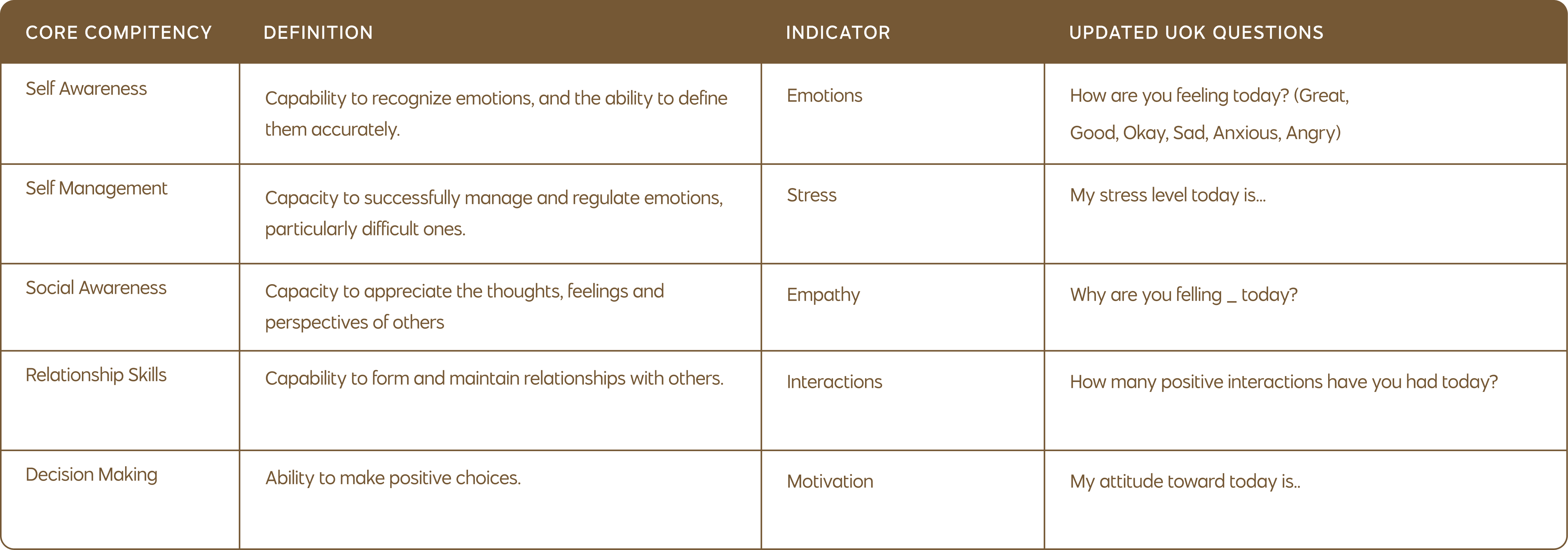 A new set of questions was created, with each one tailored to measuring student well-being based on the 5 SEL core competencies. Thus ensuring the survey is gauging students based on a standard framework understood across the educational community.